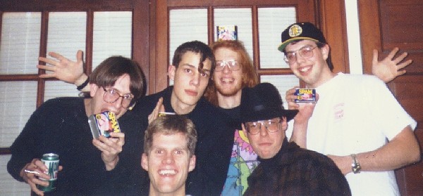 Jake, ERIC, Cthulhu, Meek, Brogen, and Theesmond during the traditional SPAM balancing ritual of VIBmas.